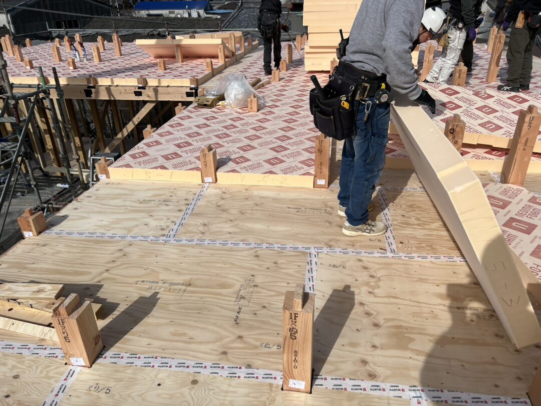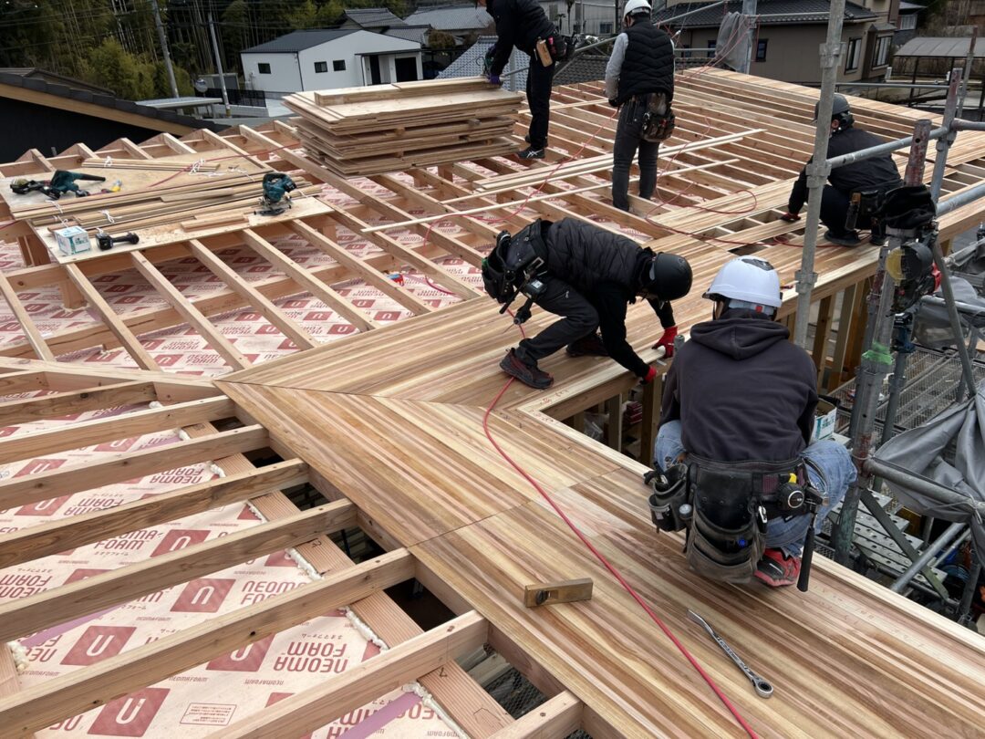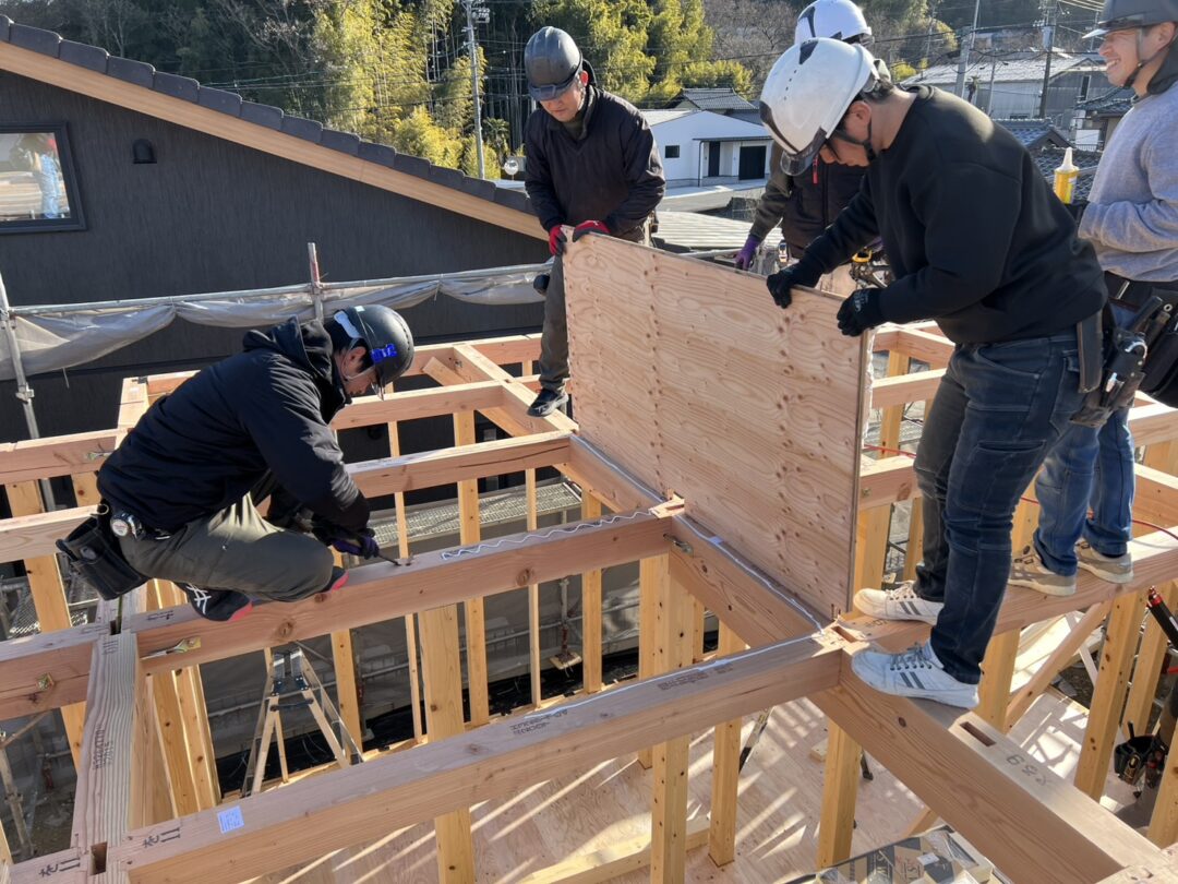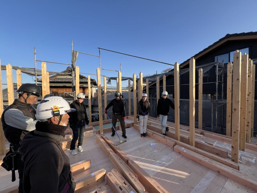 こうすればもっといいって考えながら作業する大工さんたち。