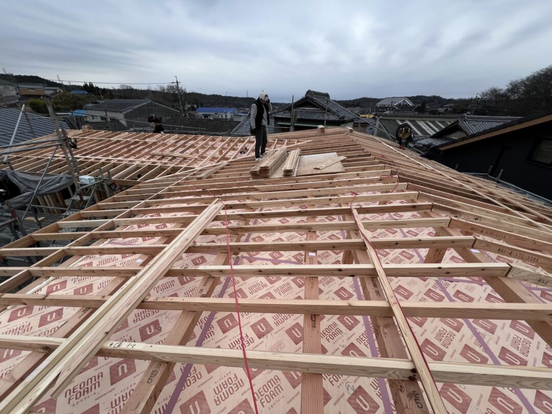 棟部分は小屋裏換気のため、あえて隙間を開けて施工!