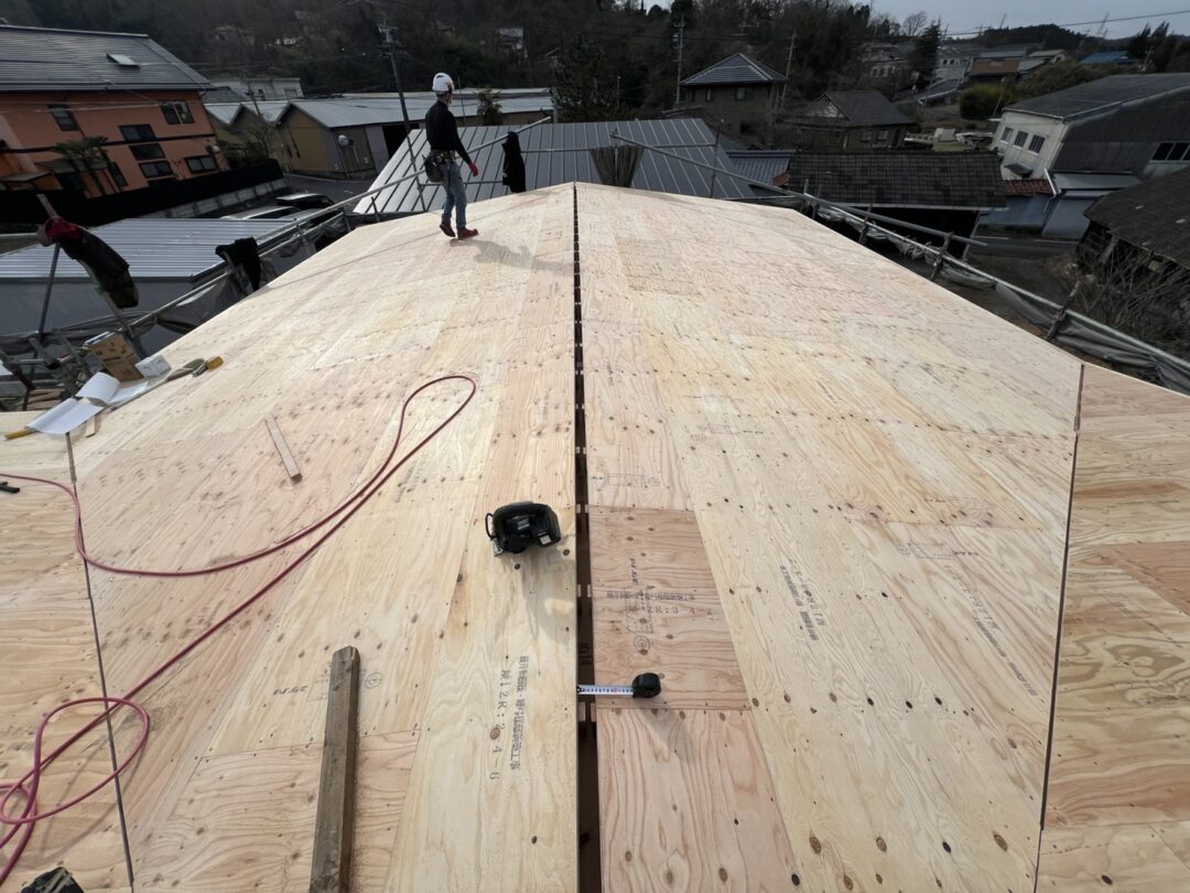 最後に屋根の野地板を貼ります。