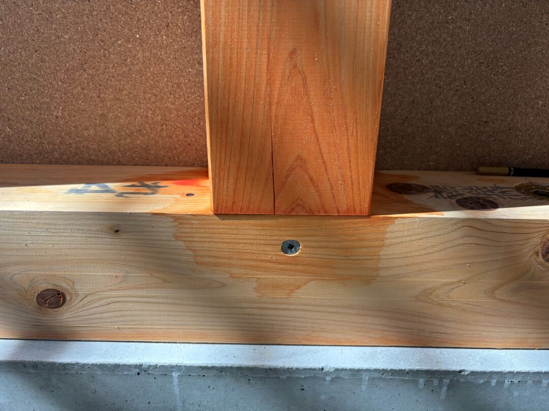 ↑土台と基礎を繋ぐアンカーの設置状況。