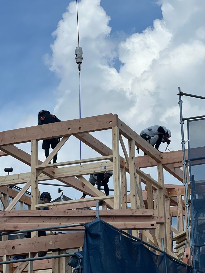 とても高い梁の上ですいすい作業する大工さんたちは本当にかっこいいです。