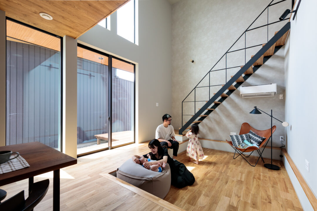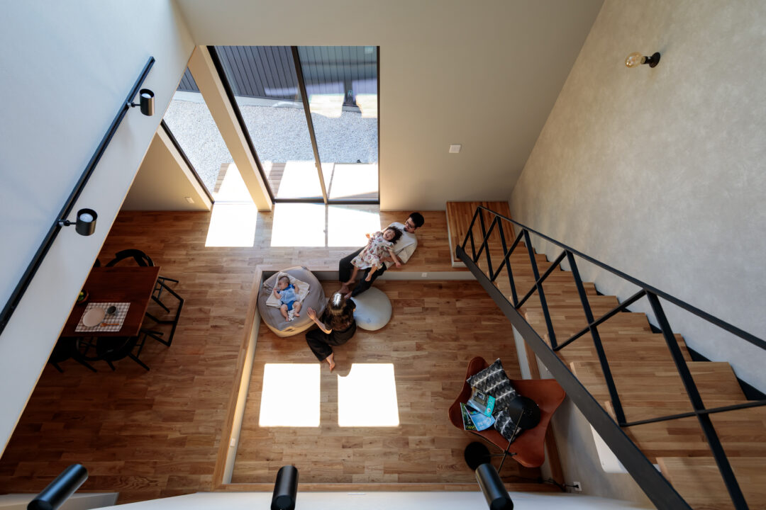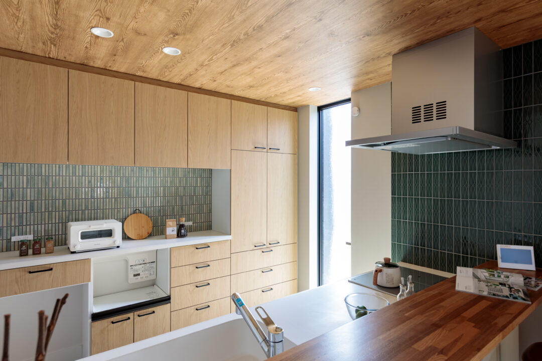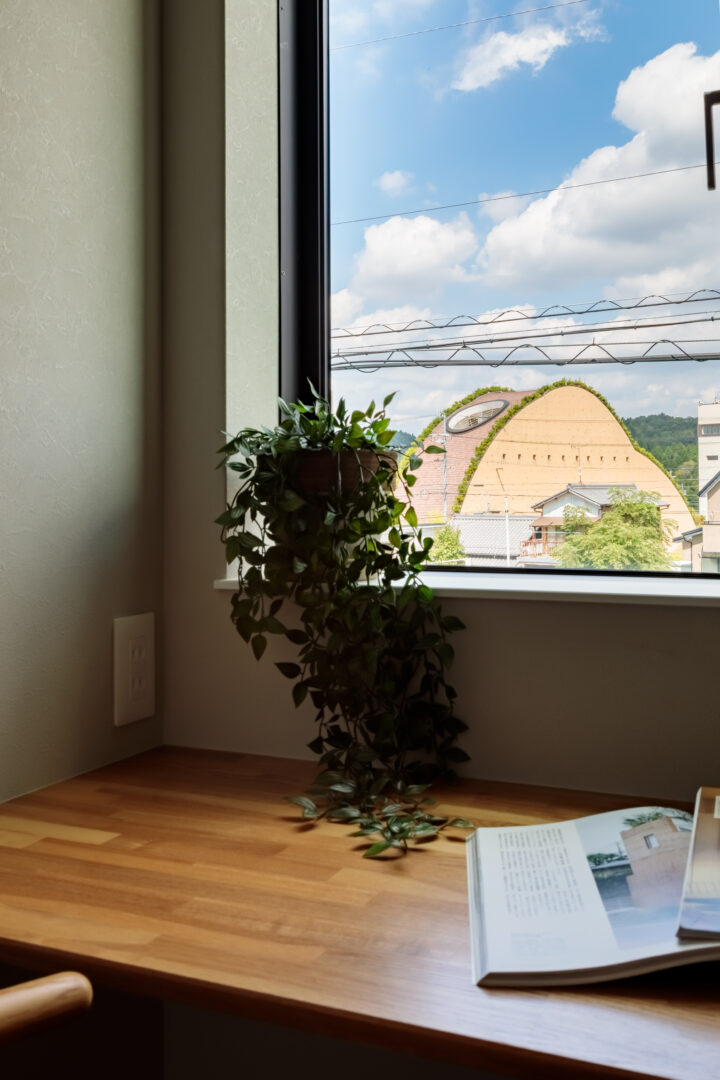 モザイクタイル生産日本一の街、多治見市にまた一つnikodeのお家が完成いたしました。 お施主様とは約3年前にお会いして、実家の敷地内に建てたいということを伺っておりました。 敷地にお伺いすると、モザイクタイルミュージアムが一望できるロケーションで、 旦那様がタイル関係のお仕事をされていることもあり、この景色を切り取った計画にしようと思ったのが印象的でした。 お施主様のご要望からリビングを1段下げるダウンリビングを採用し 家族が自然とリビングに吸い込まれるような計画をしております。 また弊社オリジナルの鉄骨階段をリビングに計画し、 またタイルを多く活用することで木以外の素材も身近に感じてもらえるようにしております。 隠し扉で隠された書斎からはモザイクタイルミュージアムを一望できるように…